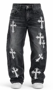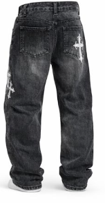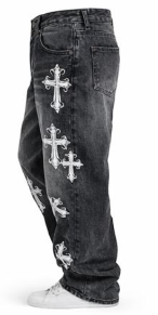 Jeans Baggy con parches en cruz desgastados en color índigo para hombre, es cómodo para uso diario, da un toque moderno y urbano, sus parches muestran un diseño diferente y llamativo, cuenta con un acabado envejecido pero manteniendo el toque moderno, a demas es facil de combinar con prendas como camisetas, sudaderas y chaquetas, manejamos tallas como la S,M,L,XL.